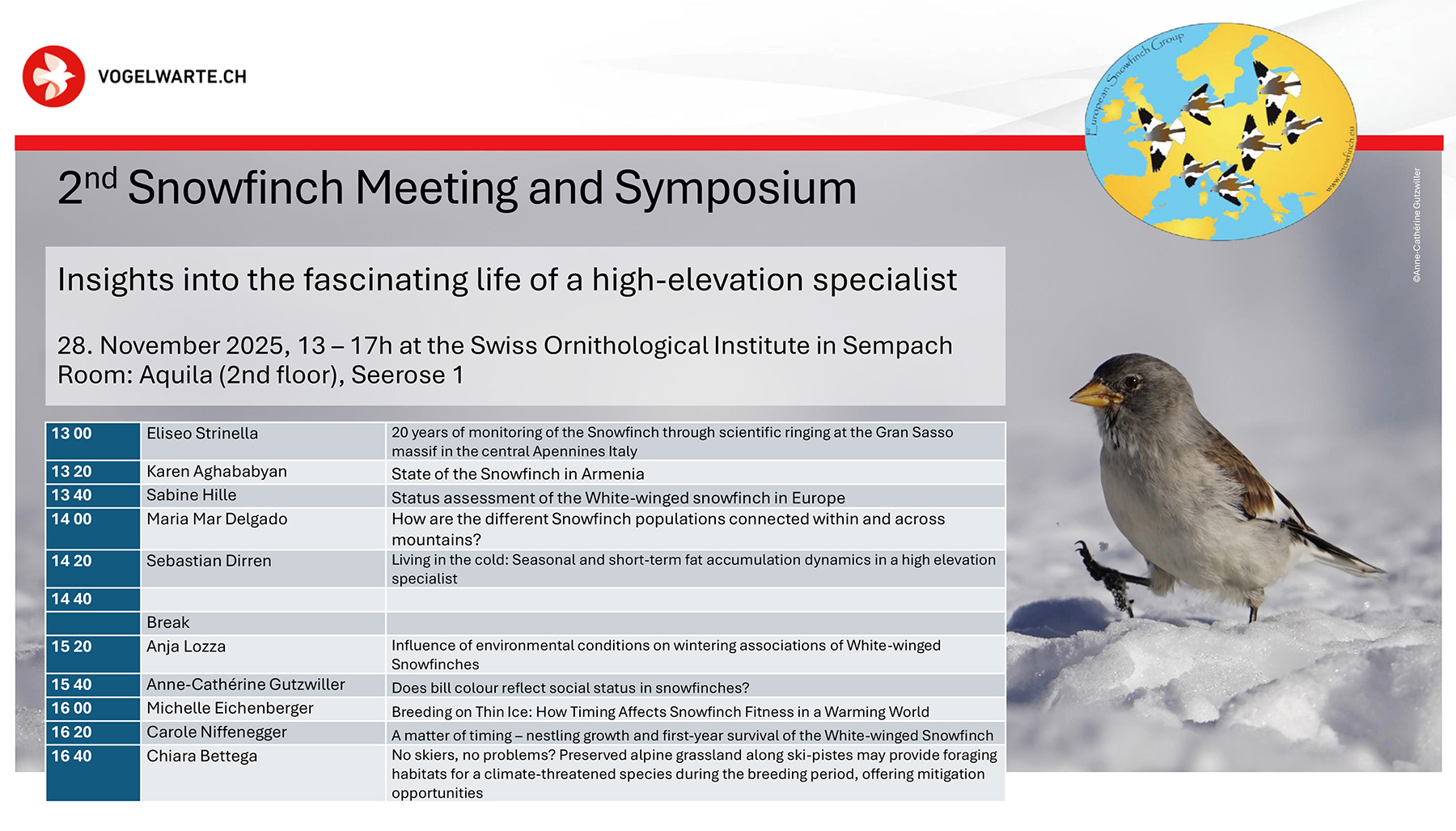 The Swiss Ornithological Institute, hosts the next meeting of the European Snowfinch group, including a Snowfinch symposium.